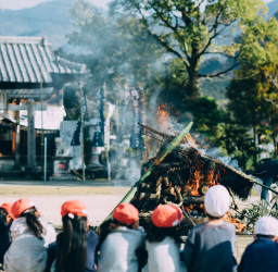 1月15日前後に行われるどんどやは、お正月飾りの門松やしめ縄、書き初めなどを火にくべて焼き払う日本の伝統行事。お正月に天からおりてきた歳神様は、どんどやの煙に乗って天に帰られるとされ、それをお見送りするために行われると言われています。古来の人々は歳神さまをお見送りしながら、無病息災や五穀豊饒を願っていたのです。